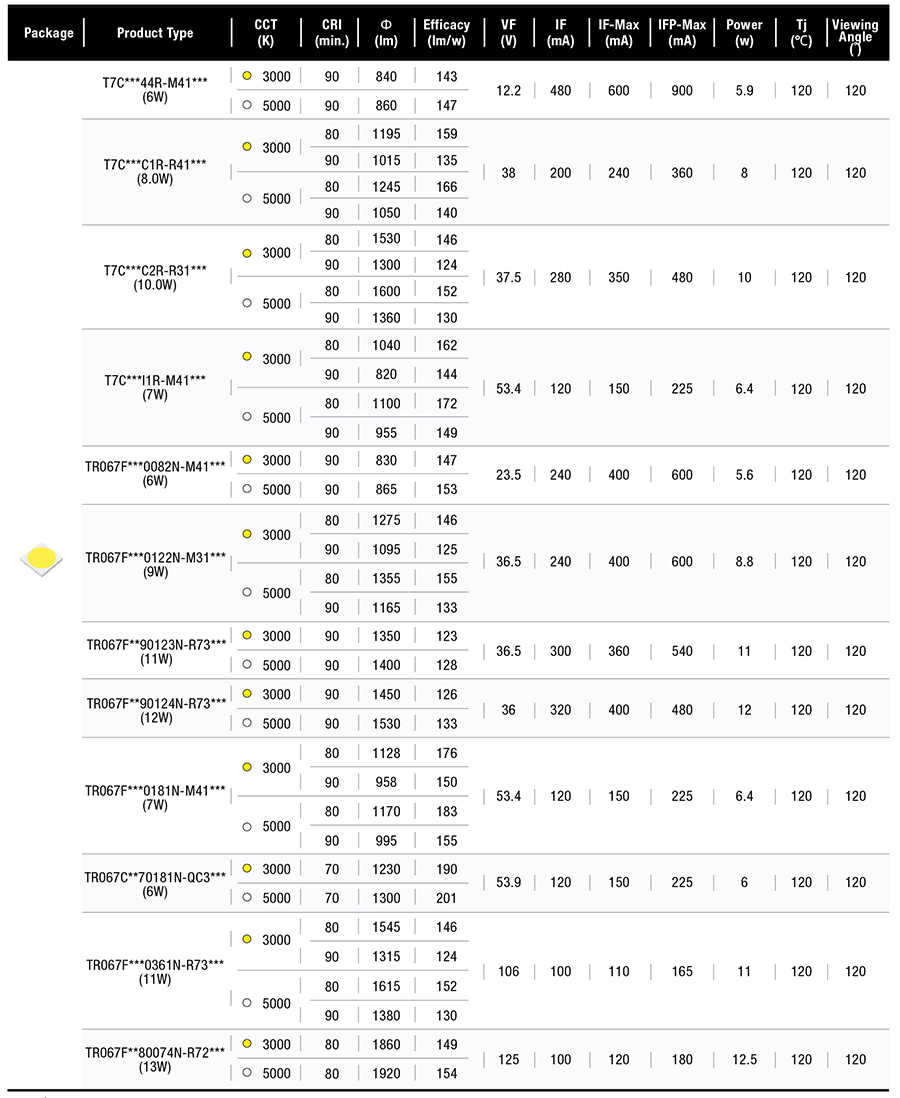 • 不同功率版本,單顆實(shí)現(xiàn)835-1600流明光輸出