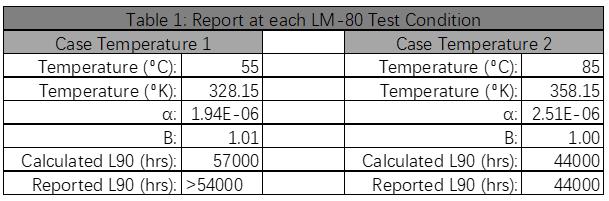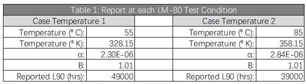 根據(jù)此報(bào)告可以推算出光源或模塊光通量下降到初始值的70%(L70)或者90%(L90)的壽命。