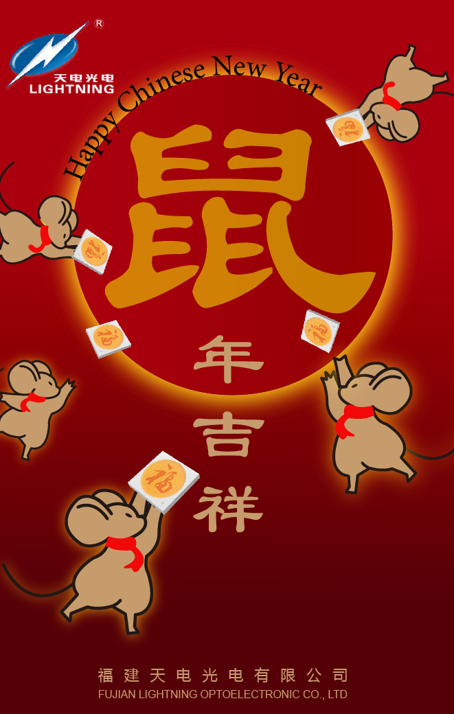 福建天電光電預祝各位夥伴新年快樂~鼠年吉祥!