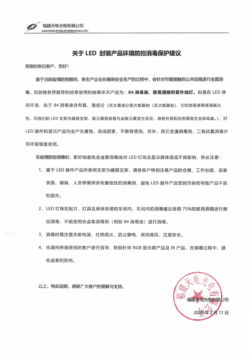 關(guān)於LED封裝產(chǎn)品環(huán)境防控消毒保護(hù)建議