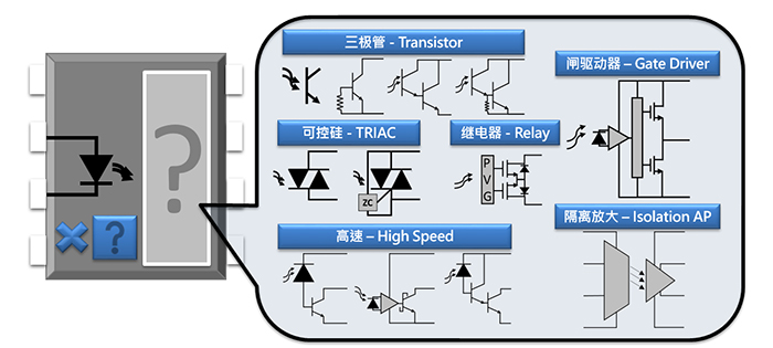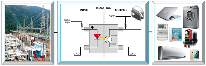 光耦元件於輸入端由電訊號(hào)轉(zhuǎn)為光訊號(hào),輸出端則吸收光訊號(hào)後轉(zhuǎn)換為電流/電壓;