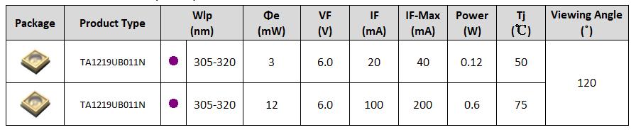 • 高光功率密度UV LED